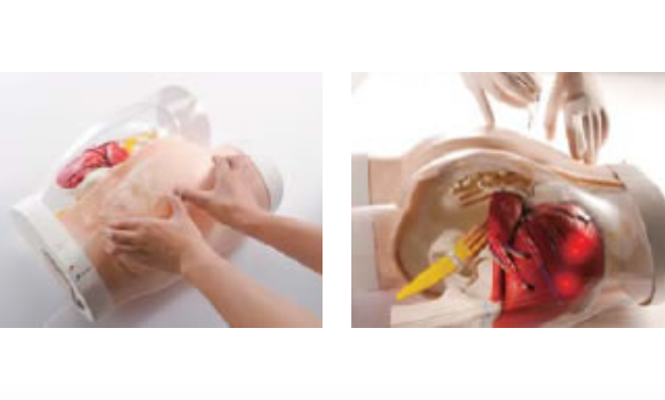 – Le pelvis est intégré. Les étudiants peuvent s’entraîner à identifier le point d’injection par la palpation de la crête iliaque et du grand trochanter